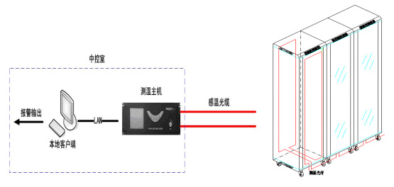 測溫系統(tǒng)的核心部分主要由本地客戶端,光纖測溫主機,感溫光纜,測溫軟件組成。如下圖2: